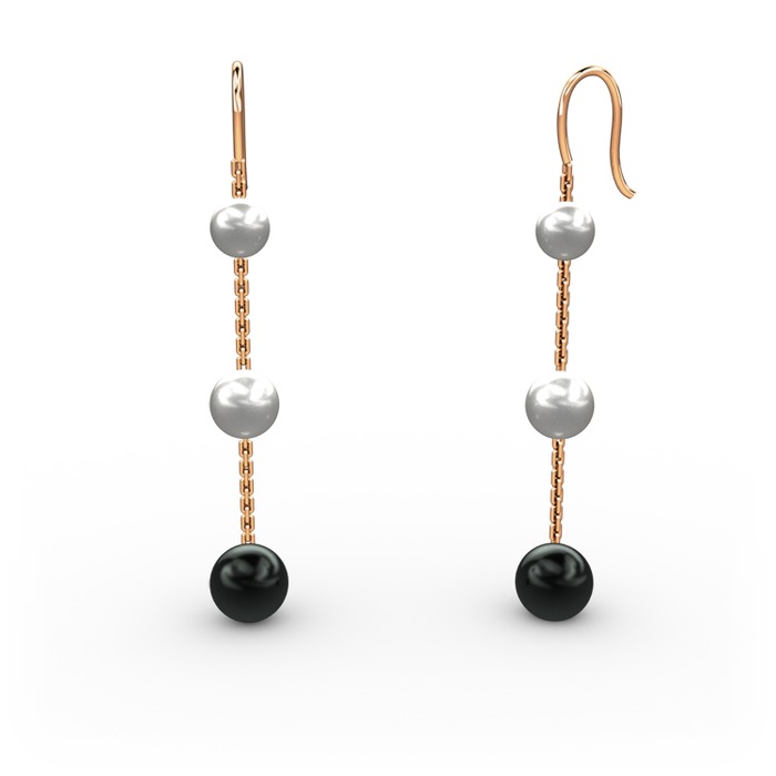 Inci ve siyah inci 925 ayar rose altın kaplama gümüş küpe