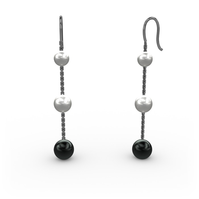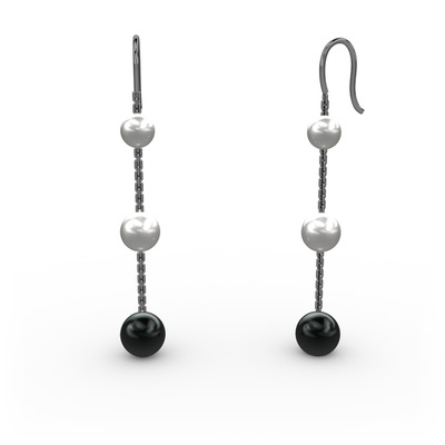 Inci ve siyah inci 925 ayar siyah rodyum kaplama gümüş küpe