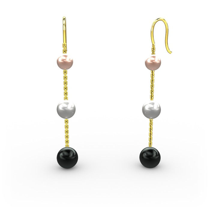 Pembe inci, inci ve siyah inci 8 ayar altın küpe