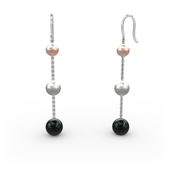 Pembe inci, inci ve siyah inci 8 ayar beyaz altın küpe