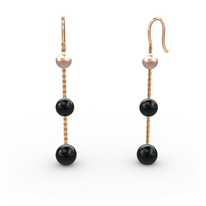 Pembe inci ve siyah inci 14 ayar rose altın küpe