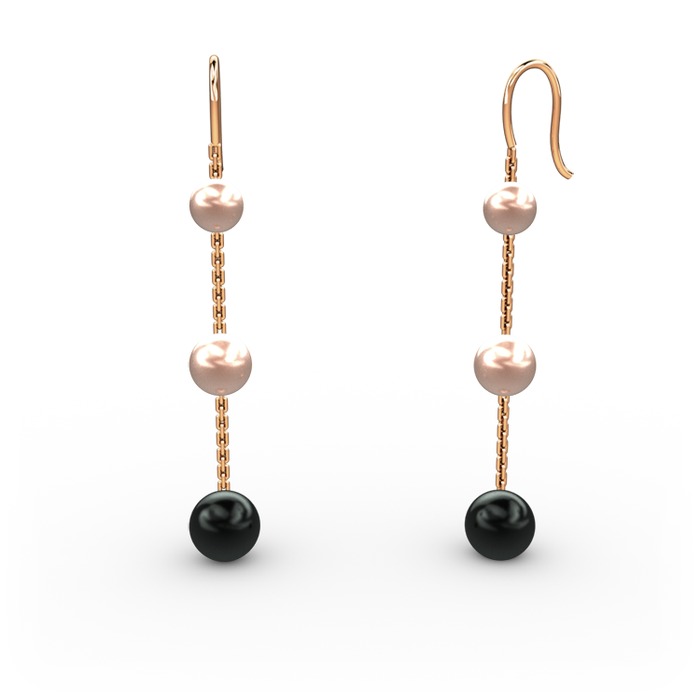Pembe inci ve siyah inci 14 ayar rose altın küpe