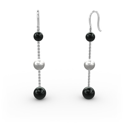 Siyah inci ve inci 14 ayar beyaz altın küpe
