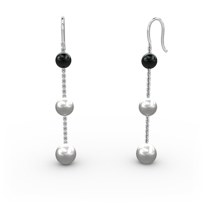 Siyah inci ve inci 8 ayar beyaz altın küpe