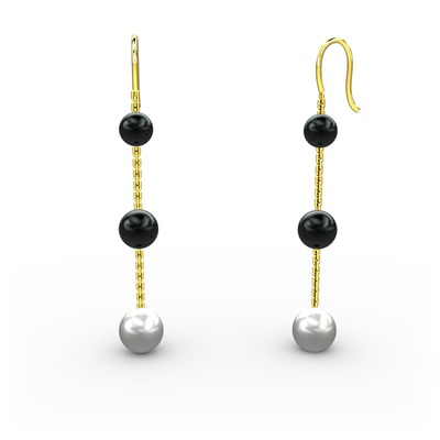 Siyah inci ve inci 925 ayar altın kaplama gümüş küpe