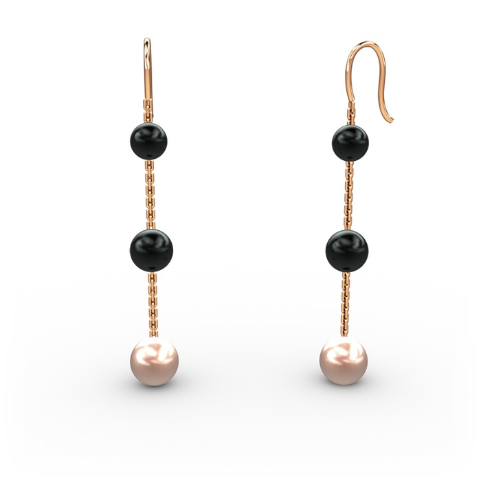 Siyah inci ve pembe inci 14 ayar rose altın küpe