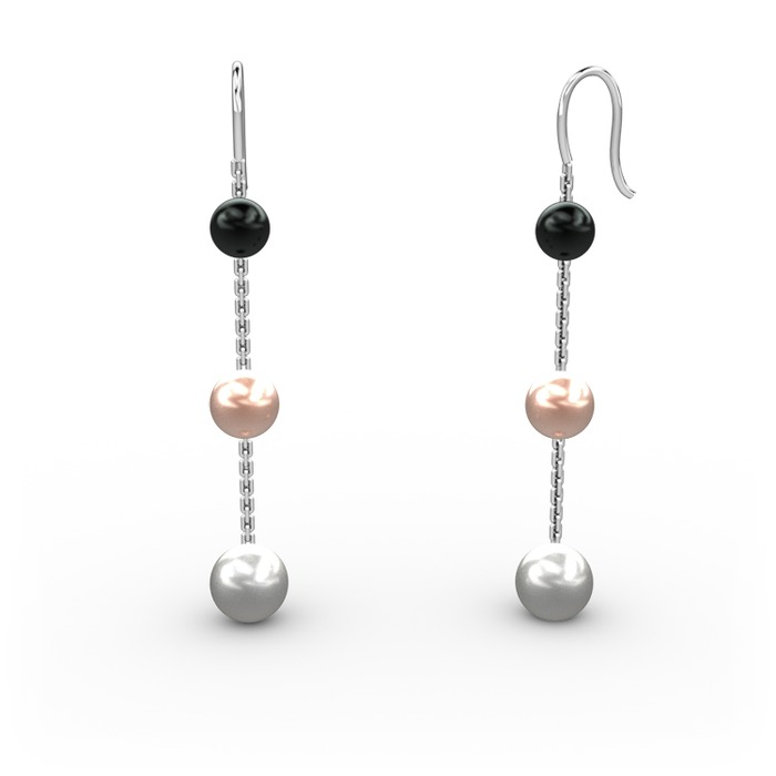Siyah inci, pembe inci ve inci 925 ayar gümüş küpe