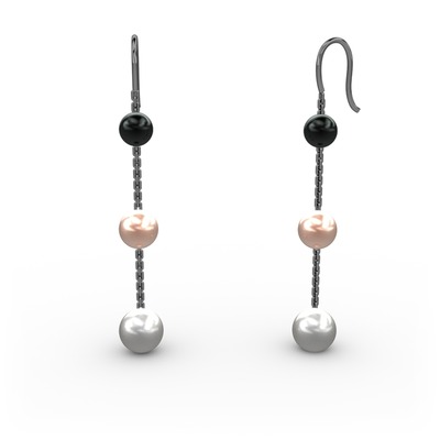Siyah inci, pembe inci ve inci 925 ayar siyah rodyum kaplama gümüş küpe