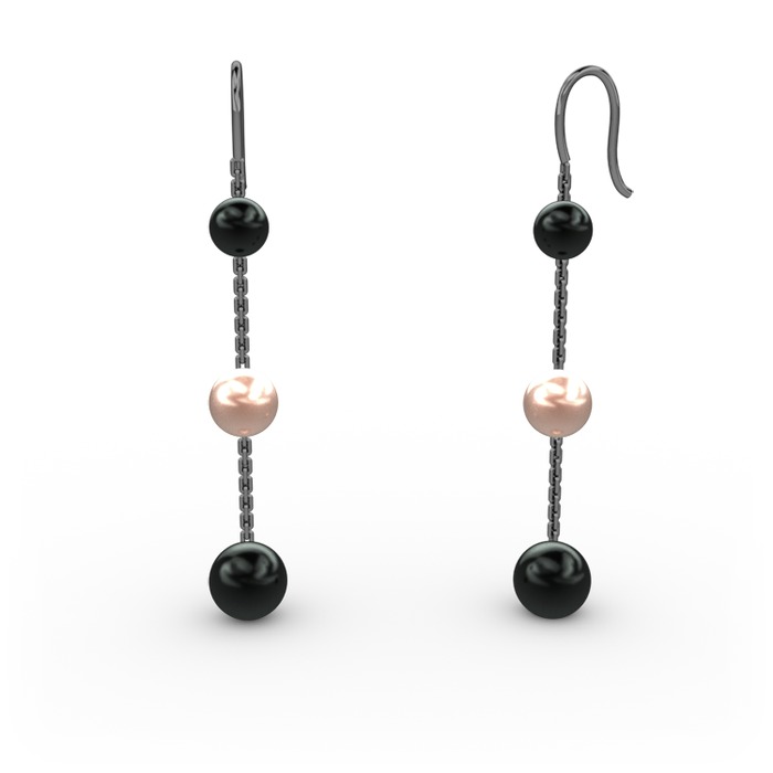 Siyah inci ve pembe inci 925 ayar siyah rodyum kaplama gümüş küpe