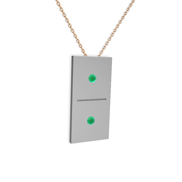 Kök zümrüt 18 ayar beyaz altın kolye (40 cm rose altın rolo zincir)