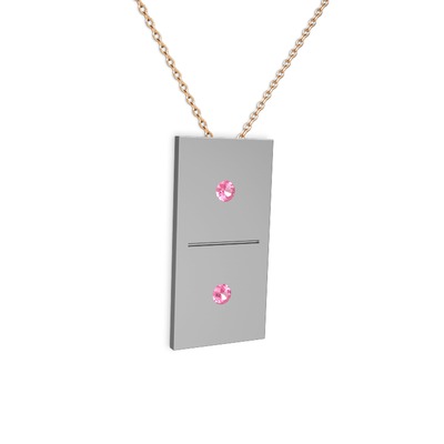 Pembe kuvars 14 ayar beyaz altın kolye (40 cm rose altın rolo zincir)
