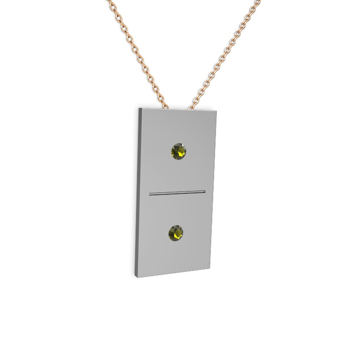 Peridot 14 ayar beyaz altın kolye (40 cm rose altın rolo zincir)