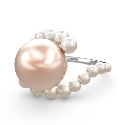 Pembe inci ve inci 14 ayar beyaz altın yüzük