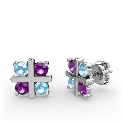 Akuamarin ve ametist 8 ayar beyaz altın küpe