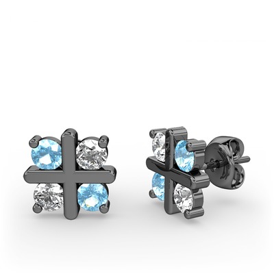 Akuamarin ve beyaz zirkon 925 ayar siyah rodyum kaplama gümüş küpe