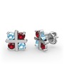 Akuamarin ve garnet 8 ayar beyaz altın küpe