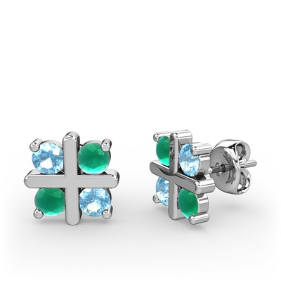 Akuamarin ve kök zümrüt 8 ayar beyaz altın küpe