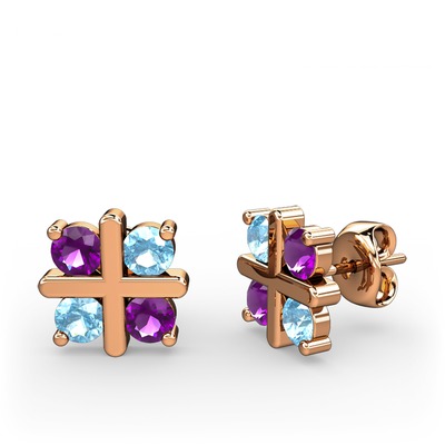 Ametist ve akuamarin 925 ayar rose altın kaplama gümüş küpe