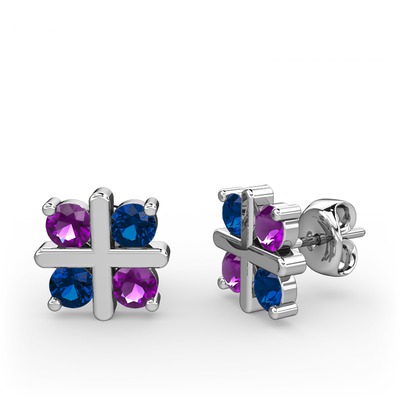 Ametist ve lab safir 8 ayar beyaz altın küpe