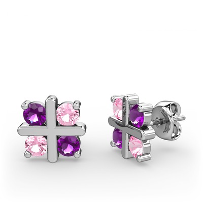 Ametist ve pembe kuvars 8 ayar beyaz altın küpe