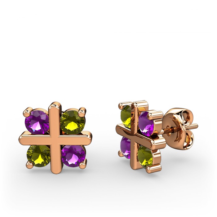 Ametist ve peridot 18 ayar rose altın küpe