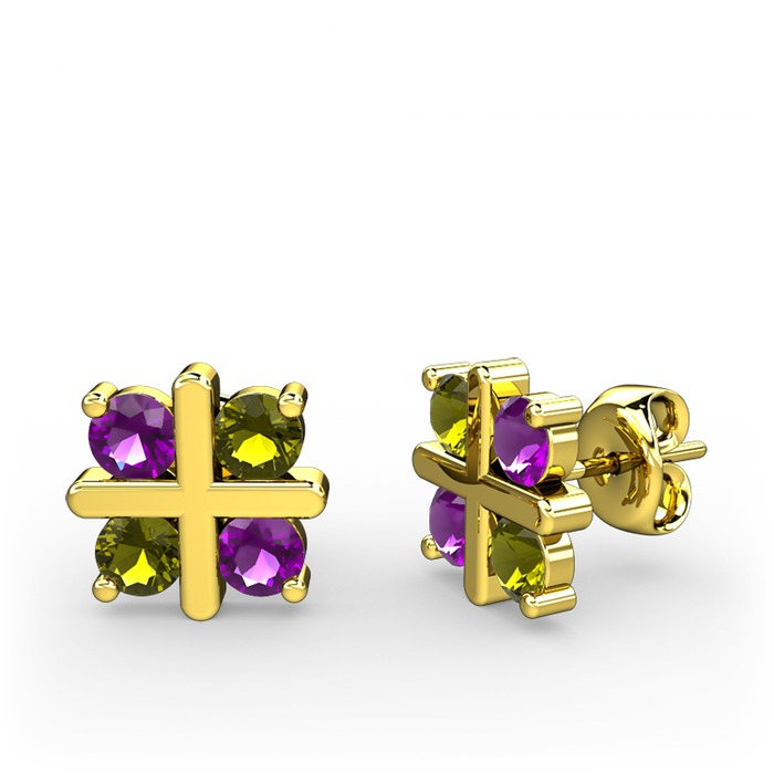 Ametist ve peridot 8 ayar altın küpe