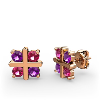 Ametist ve rodolit garnet 8 ayar rose altın küpe