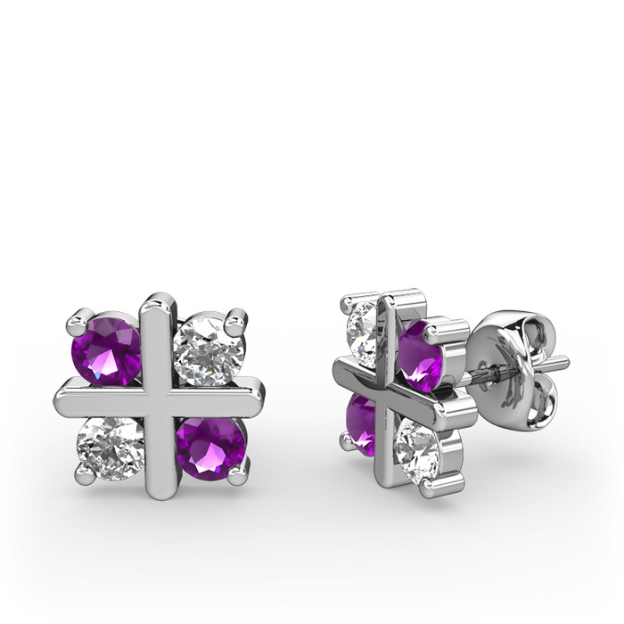 Ametist ve swarovski 8 ayar beyaz altın küpe