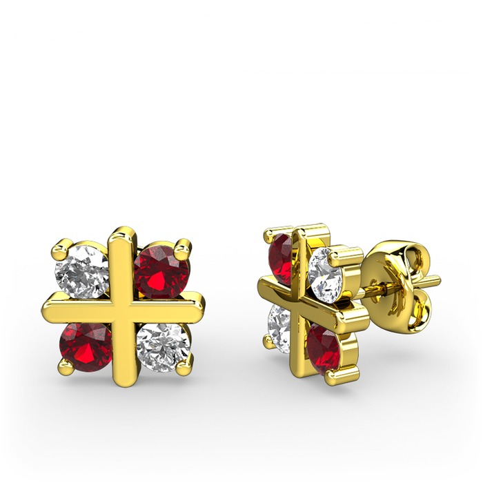 Beyaz zirkon ve garnet 8 ayar altın küpe