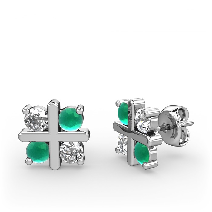 Beyaz zirkon ve kök zümrüt 18 ayar beyaz altın küpe
