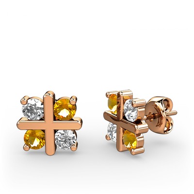 Beyaz zirkon ve sitrin 8 ayar rose altın küpe