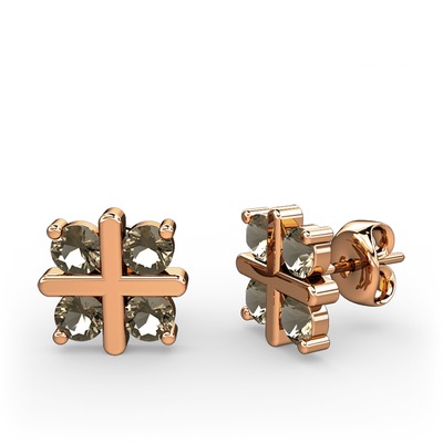 Dumanlı kuvars 18 ayar rose altın küpe