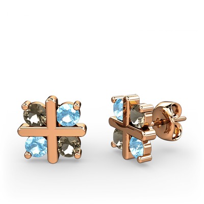 Dumanlı kuvars ve akuamarin 14 ayar rose altın küpe