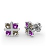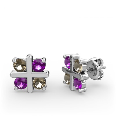 Dumanlı kuvars ve ametist 18 ayar beyaz altın küpe