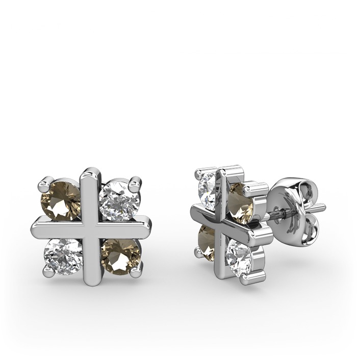 Dumanlı kuvars ve beyaz zirkon 18 ayar beyaz altın küpe