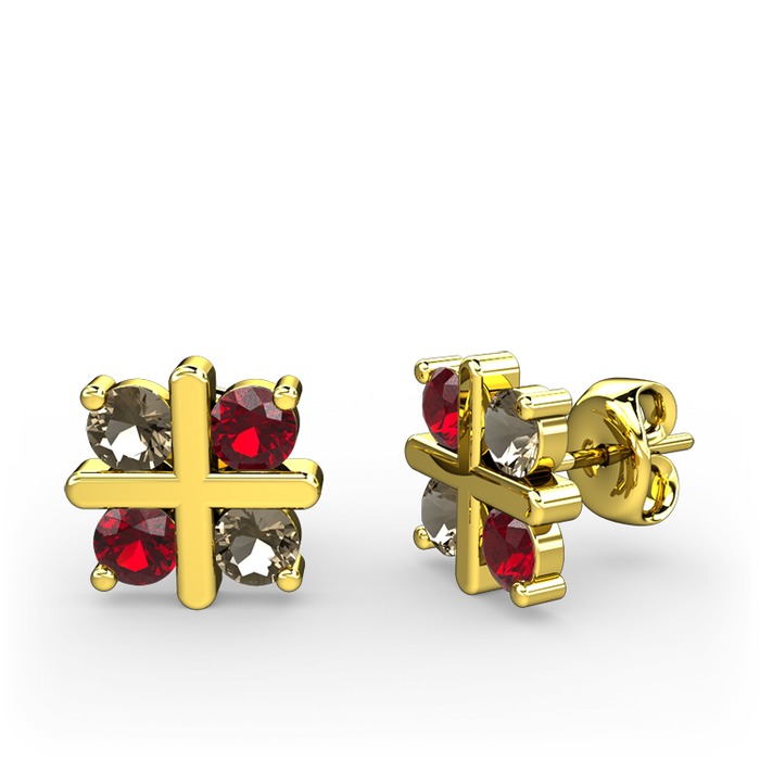 Dumanlı kuvars ve garnet 18 ayar altın küpe