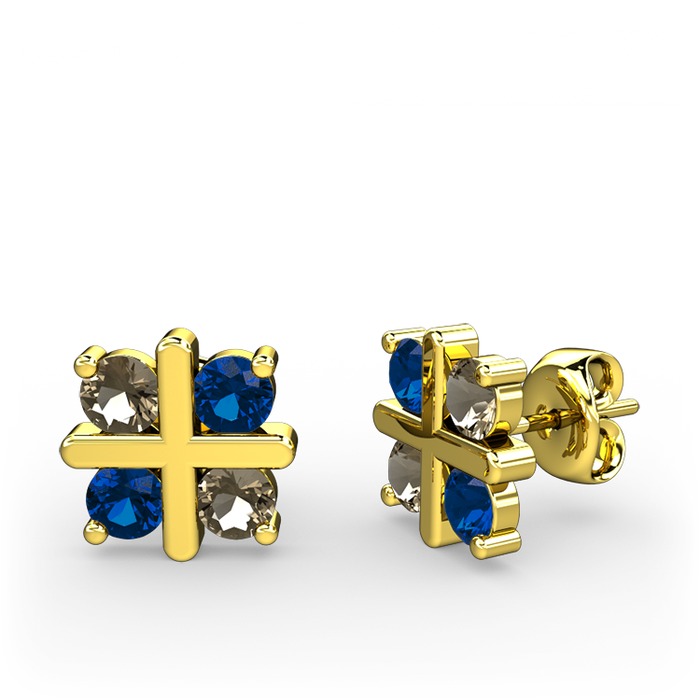 Dumanlı kuvars ve lab safir 8 ayar altın küpe