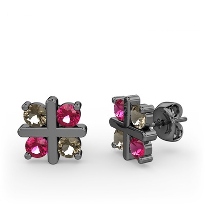 Dumanlı kuvars ve rodolit garnet 925 ayar siyah rodyum kaplama gümüş küpe