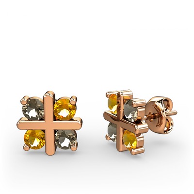 Dumanlı kuvars ve sitrin 18 ayar rose altın küpe
