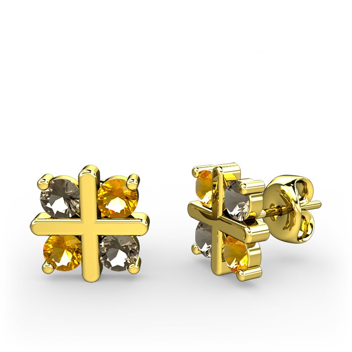 Dumanlı kuvars ve sitrin 8 ayar altın küpe