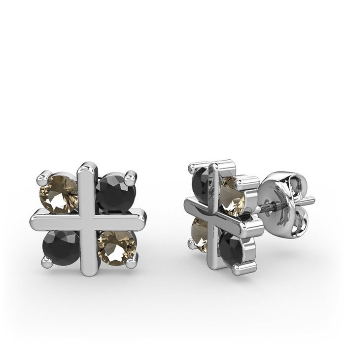 Dumanlı kuvars ve siyah zirkon 14 ayar beyaz altın küpe