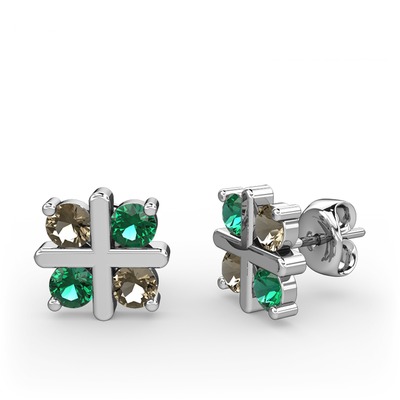 Dumanlı kuvars ve yeşil kuvars 8 ayar beyaz altın küpe