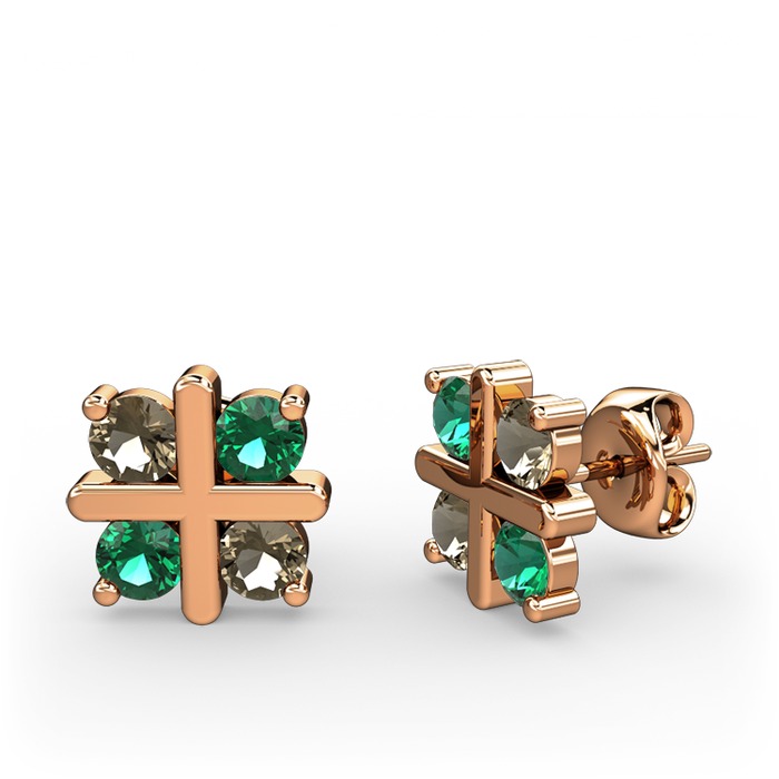 Dumanlı kuvars ve yeşil kuvars 8 ayar rose altın küpe