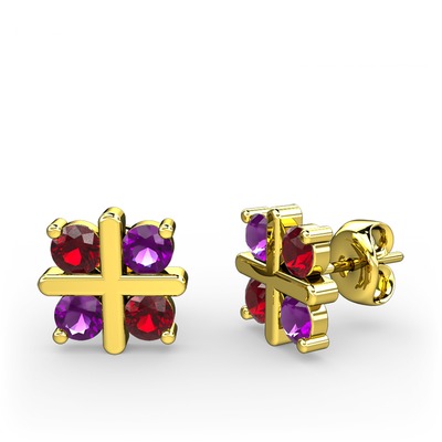 Garnet ve ametist 925 ayar altın kaplama gümüş küpe