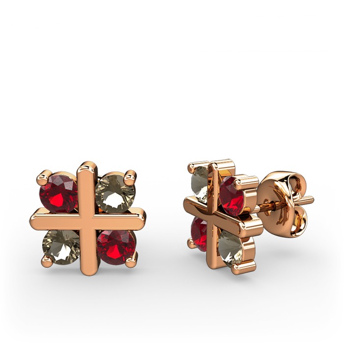 Garnet ve dumanlı kuvars 18 ayar rose altın küpe