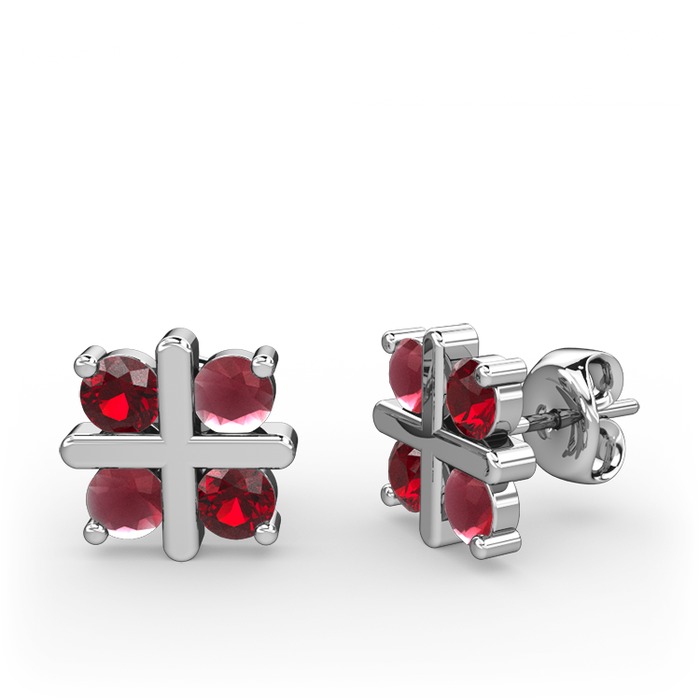 Garnet ve kök yakut 14 ayar beyaz altın küpe
