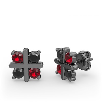 Garnet ve siyah zirkon 925 ayar siyah rodyum kaplama gümüş küpe