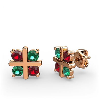 Garnet ve yeşil kuvars 8 ayar rose altın küpe