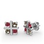 Kök yakut ve dumanlı kuvars 925 ayar gümüş küpe