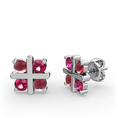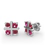 Kök yakut ve rodolit garnet 14 ayar beyaz altın küpe